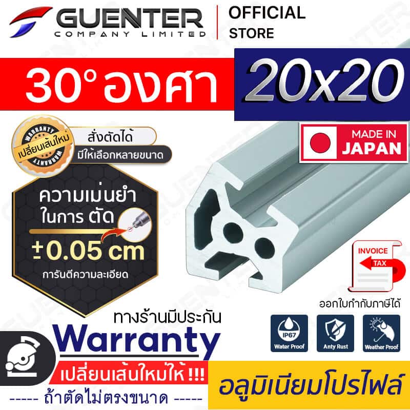อลูมิเนียมโปรไฟล์ 20×20 T-Slot มุม 30 องศา สินค้ามาตรฐาน ยาวสุด 4 เมตร เป็นรุ่นที่นิยมมากสำหรับงานโครงสร้างทั่วไปสามารถใช้ร่วมกับ อลูมิเนียมโปรไฟล์ T-Slot ซีรี่ 20 ได้ทุกรุ่นและที่เป็นจุดเด่นของรุ่นนี้คือจะมีด้าน30องศาทำเสาหรือคานโครงสร้างและเลือกใช้น็อตได้หลายชนิด เช่น FreeNut ,T-Nut ,EasyNut ,T-Bolt เป็นต้น แล้วลักษณะการใช้งาน