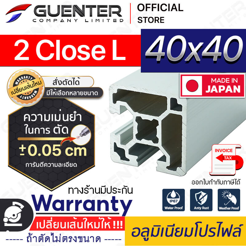 อลูมิเนียมโปรไฟล์ T-Slot ซีรี่ 40 ขนาด 40×40 2 Close L อลูมิเนียม T-Slot ปิดร่อง 2 ด้าน ยาวสุด 4 เมตร ใช้ร่วมกับอลูมิเนียมโปรไฟล์ซีรี่ 45 ได้ทุกรุ่นและที่เป็นจุดเด่นของรุ่นนี้คือจะมีด้านเรียบ 2 ด้าน สำหรับงานโชว์ผิว ตัวอลูมิเนียมโปรไฟล์สวยงาม ไม่เป็นสนิม น้ำหนักเบาแต่สามารถรับแรงได้มาก ใช้ประกอบสินค้าได้หลากหลายชนิด เช่น โต๊ะ ชั้นวางสินค้า ตู้โชว์สินค้า หรือ เก้าอี้นั่งทำงาน รวมถึงใช้เป็นชิ้นส่วนประกอบเครื่องจักรในโรงงานอุตสาหกรรม