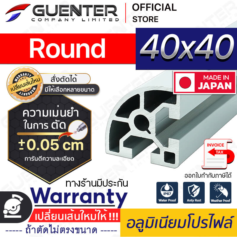 อลูมิเนียมโปรไฟล์ T-Slot ซีรี่ 40 ขนาด 40×40 Round อลูมิเนียมโปรไฟล์ T-Slot มุมโค้ง ยาวสุด 4 เมตร ใช้ร่วมกับอลูมิเนียมโปรไฟล์ซีรี่ 40 ได้ทุกรุ่นและที่เป็นจุดเด่นของรุ่นนี้คือจะมีด้านโค้งสำหรับทำเสาหรือคานโครงสร้าง ตัวอลูมิเนียมโปรไฟล์สวยงาม ไม่เป็นสนิม น้ำหนักเบาแต่สามารถรับแรงได้มาก ใช้ประกอบสินค้าได้หลากหลายชนิด เช่น โต๊ะ ชั้นวางสินค้า ตู้โชว์สินค้า หรือ เก้าอี้นั่งทำงาน รวมถึงใช้เป็นชิ้นส่วนประกอบเครื่องจักรในโรงงานอุตสาหกรรม